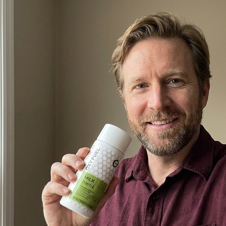 OXYFUEL is made with natural ingredients and is generally well-tolerated. However, if you're on prescription medications (especially blood thinners, diabetes medications, or liver medications), we recommend consulting your healthcare provider before starting any new supplement. Milk thistle can interact with certain medications, and your doctor can provide personalized guidance based on your specific situation.